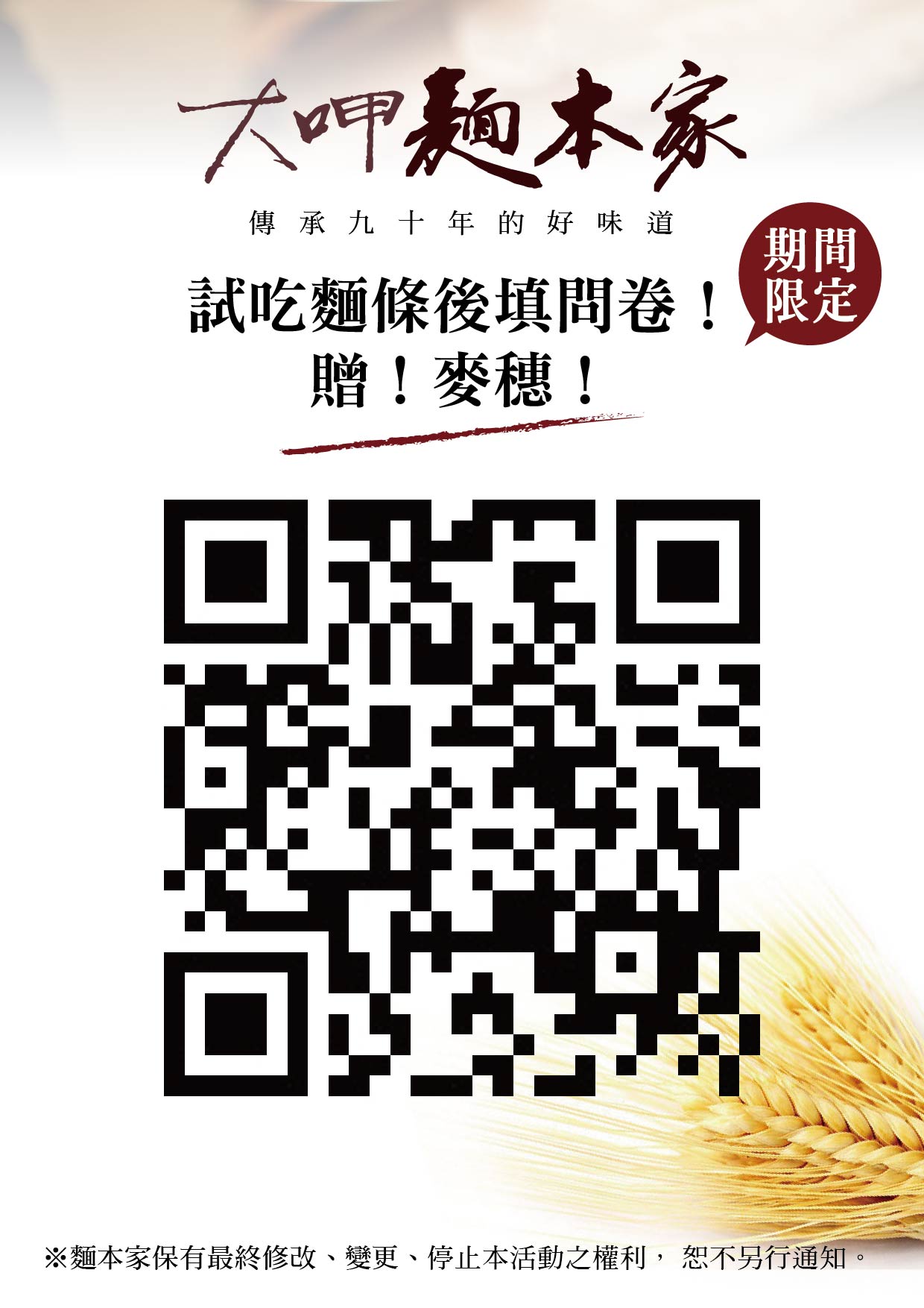 大呷麵本家故事館」,試吃麵條後填問卷!贈!麥穗!活動開跑囉~